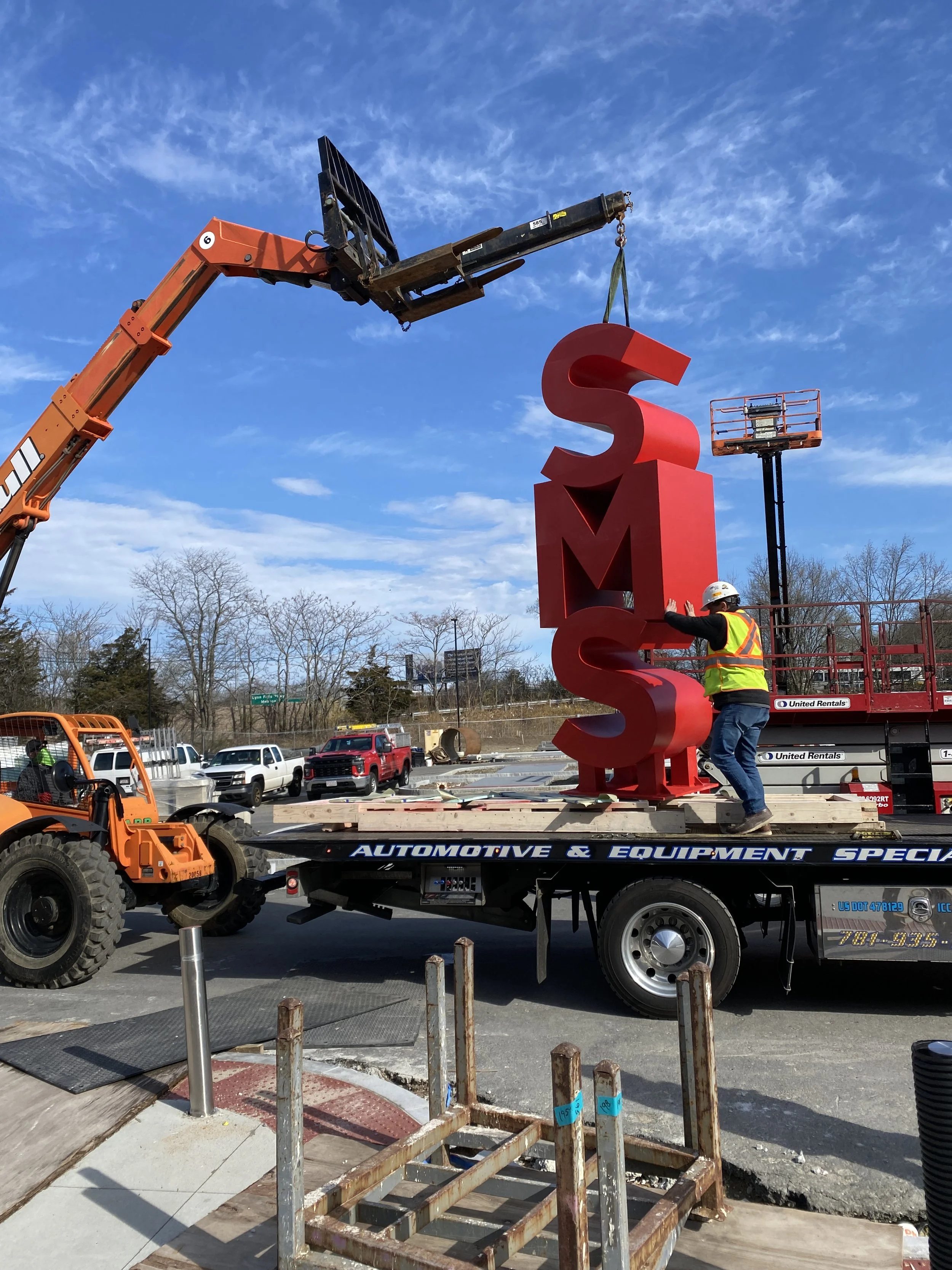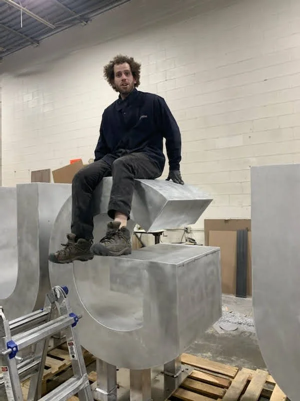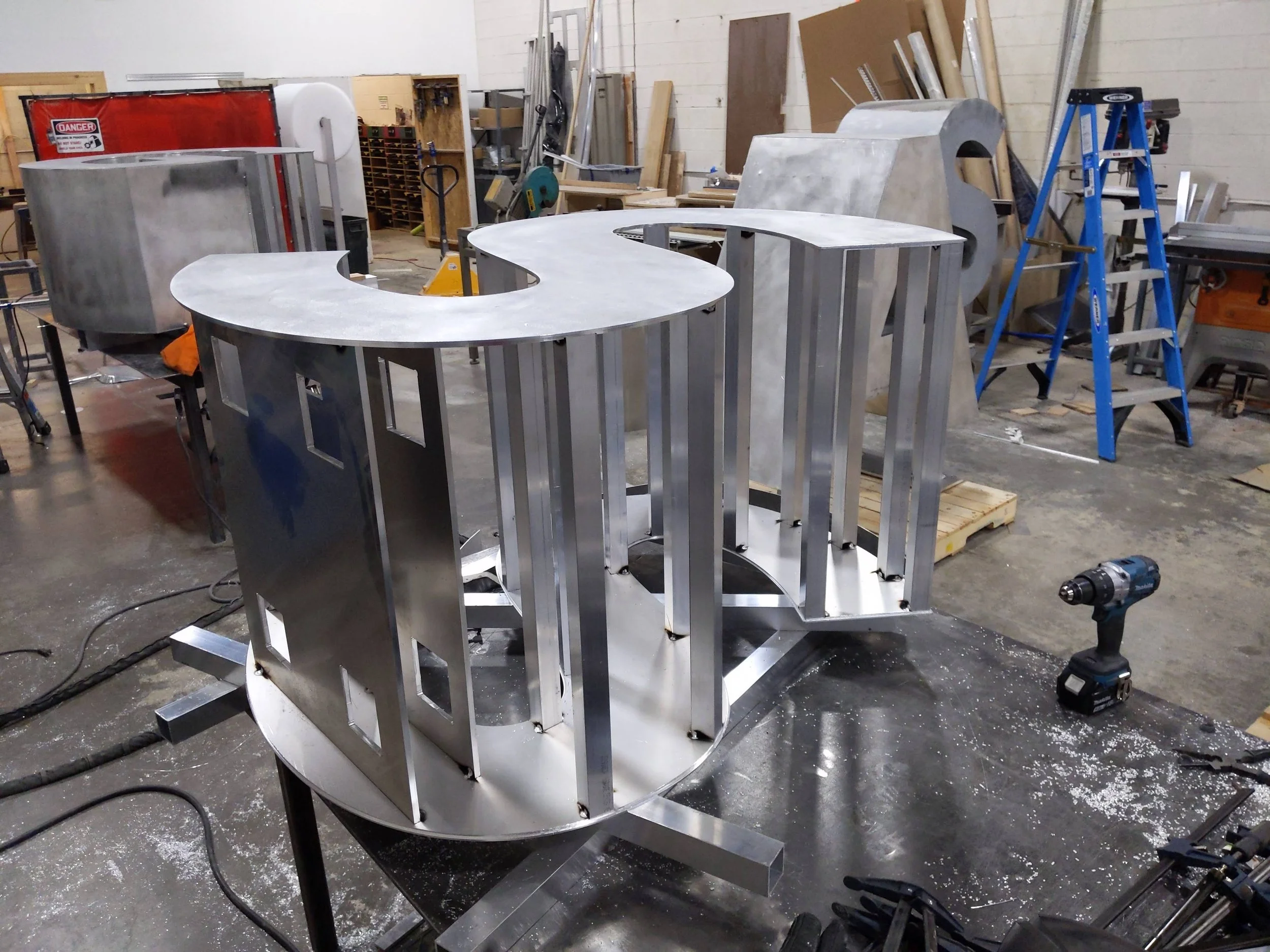 Knowing the environment that it would live in; the core structure drove all the decisions. Cross tubing was placed in strategic areas welded across plates. Hand rolled and shaped letter profiles 36” deep was the work out of the year. But a tremendous satisfaction was felt when all the parts fitted in and it stood tall.